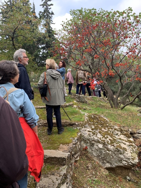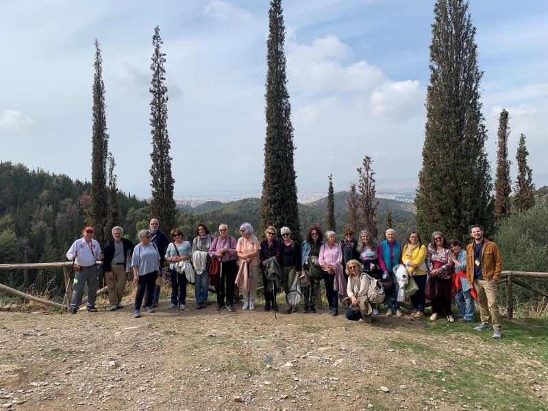 Μετά την εισαγωγή από τον διευθυντή της Φιλοδασικής, Πάνο Καφούσια, και τον δασοτεχνικό υπεύθυνο διαχείρισης του Αισθητικού Δάσους, Δρ. Νίκο Πάγκα, ξεκινήσαμε τη διαδρομή μας από τον Βοτανικό Κήπο, υπό την καθοδήγηση της υπεύθυνης του Κήπου, Σοφίας Σταθάτου. Στη συνέχεια, κατευθυνθήκαμε προς τη Μονή Καισαριανής, καταλήγοντας στον λόφο των Ταξιαρχών, με την πανοραμική θέα προς την πόλη και τον Σαρωνικό.